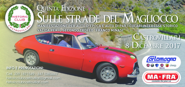 L’Historic club Castrovillari è lieto di annunciare che sono ufficialmente aperte le iscrizioni per l’evento motoristico “Sulle strade del Magliocco 2017”. Un appuntamento imperdibile per tutti gli appassionati di auto storiche giunto, ormai, alla quinta edizione.