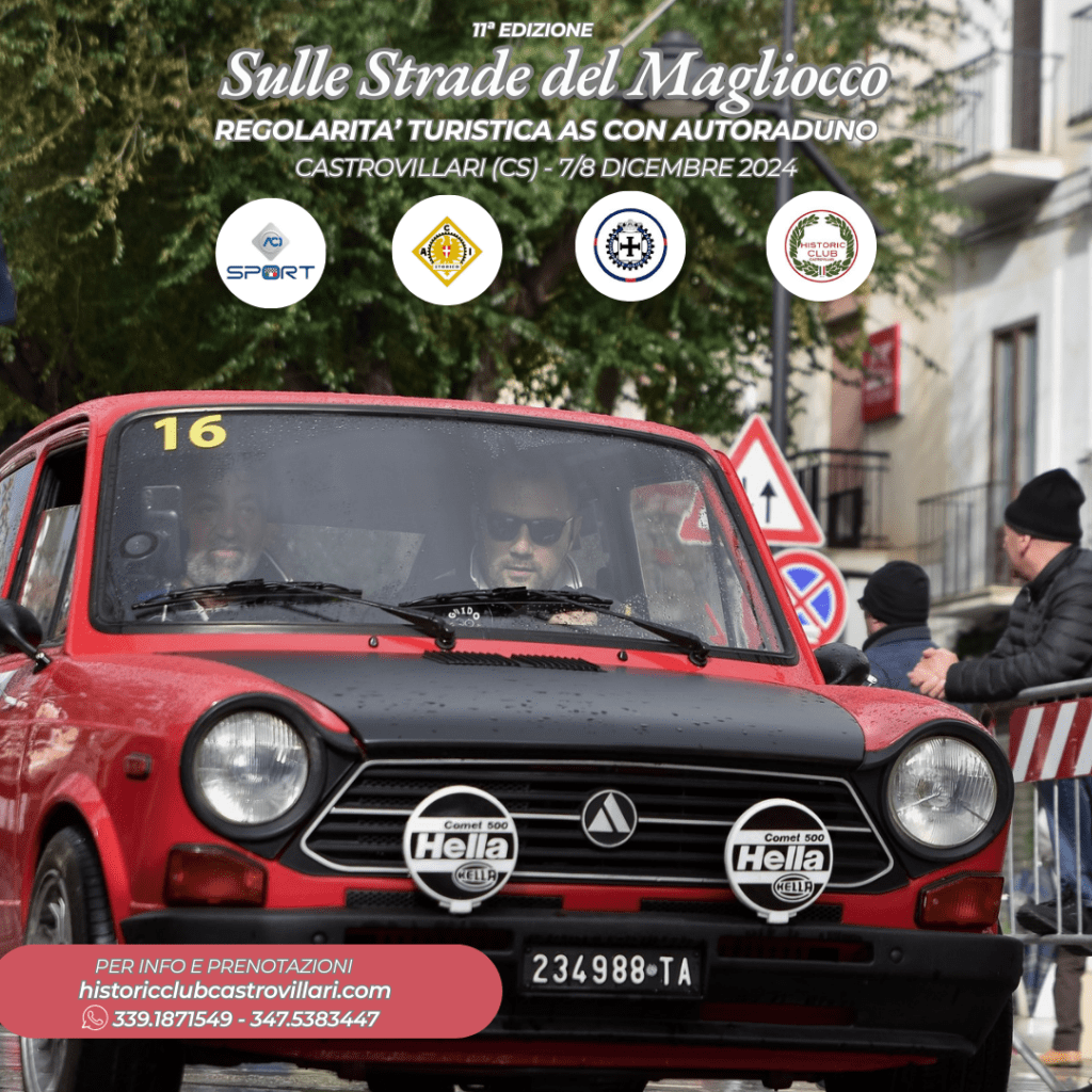 In occasione di “Sulle strade del Magliocco” l’Historic Club Castrovillari, chiuderà la stagione sportiva 2024 con il consueto pranzo degli auguri di Natale presso le Tenute Ferrocinto, partner storico dell’evento. Tutte le info sul sito historicclubcastrovillari.com e sui canali social