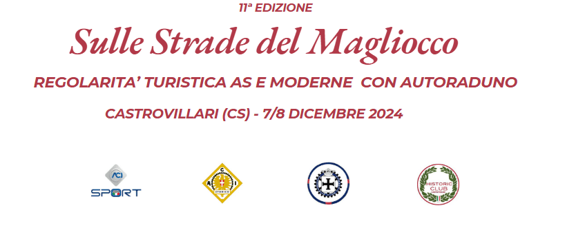 L’evento che chiude la stagione sportiva nazionale per gli appassionati di regolarità auto storiche “Sulle strade del Magliocco” promosso, ideato e realizzato dall’Asd Historic Club Castrovillari presieduta da Domenico Campilongo.